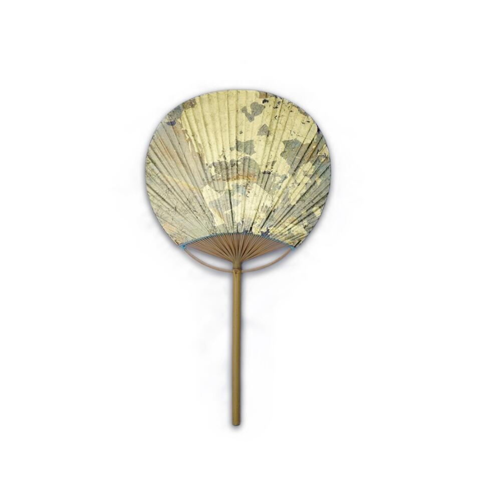 日本には様々な飾りうちわが現存しますが、本金箔や焼箔を用いることで、100年前の家屋の色彩ではなく、現代の家屋のインテリアにふさわしい高級感と重厚感のある飾りうちわとして創作しています。一点一点異なる表現が施されているため、同じ作品は世界に存在しません。裏面には、日本の琳派を学び、西陣織の帯のデザインを50年間手掛けている絵師、下川千秋が手掛けています。